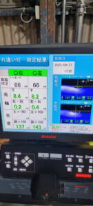 ヘッドライトの光軸をテスターで測定し、調整を行いました。