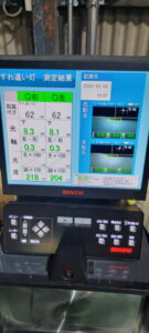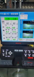 ヘッドライトの光軸をテスターで測定し、調整を行いました。
