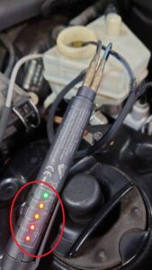 ※写真はオイル内に水分が含まれているかをチェックするテスターでの