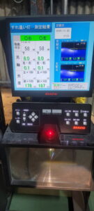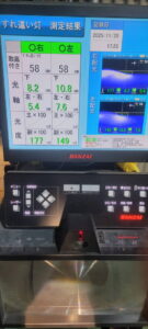 ヘッドライトの光軸をテスターで測定し、調整を行いました。