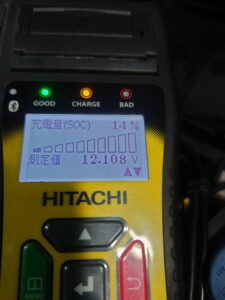専用テスターで診断したところ充電量の数値がかなり低かったため