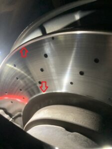 摩耗が進んでいたためブレーキパッドとディスクローターをセットで交換いたしました。