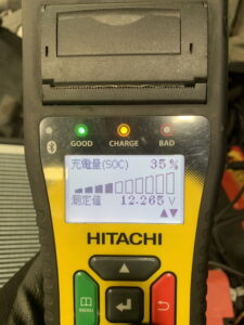 点検の結果、バッテリーの健全性は良好・要充電と判断され、充電量が35%まで低下していました。