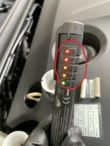 ※写真はオイル内に水分が含まれているかをチェックするテスターでの