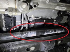 下回り点検をした際にクーラント漏れの跡が見つかりました。