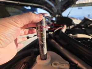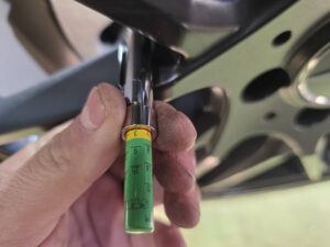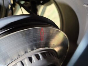 下の画像はフロントブレーキパットの摩耗残量になります。