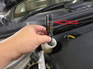 車検でご入庫の際は毎回ブレーキフルードテスターで測定診断を実施して現状の状態を確認致します。