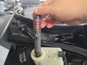 車検でご入庫の際は毎回ブレーキフルードテスターで測定診断を実施して現状の状態を確認致します。