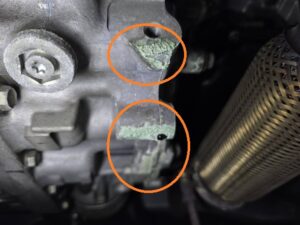 こちらもエンジンオイル漏れ同様に漏れ止めにて対応を致しました。