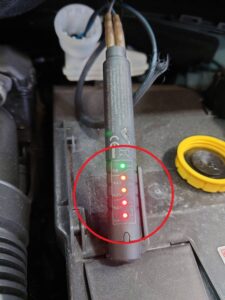 点検の際、バッテリーを専用テスターで測定したところ「要注意」との診断結果が出ました。