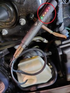 ※写真はオイル内に水分が含まれているかをチェックするテスターでの計測です。