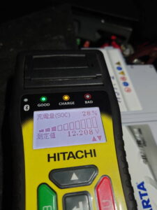 バッテリーの点検を行ったところ、充電量が28%まで低下していたため、リフレッシュ充電を行いました。