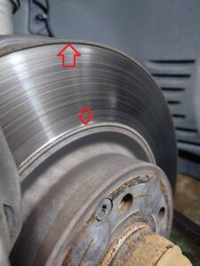 ディスクローターにも削れによる段差が発生していたため、ブレーキ鳴きや偏摩耗を防ぐために合わせて交換いたしました。