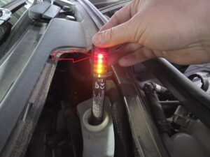 フルード内の湿気混入率を測定しており交換の値まで反応致しました。