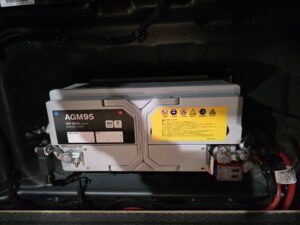 事前にご用意いただいたバッテリーAGM規格 95AH同規格にて交換を致しました。