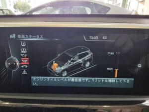 オイル量が少なく1リットル程度補充が必要な状態でした。