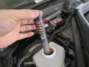 車検でご入庫の際は毎回ブレーキフルードテスターで測定診断を実施して現状の状態を確認致します。