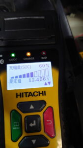専用テスターでチェックしたところ充電量が少し下がっていたため