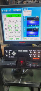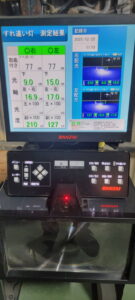 ヘッドライトの光軸をテスターで測定し、調整を行いました。