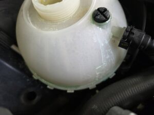 冷却水系統の定番故障箇所であるラジエーターのリザーバータンク(エキスパンションタンク)から冷却水が滲み出ているのを確認いたしました。