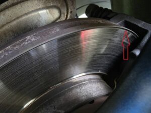 また、ブレーキローターに段差が発生しており、新品パッドとの適合性を考慮して同時に交換しました。