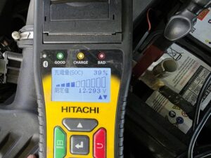 バッテリーテスターで測定したところ、充電量が39%まで低下していましたが、受電機能に問題はなかったため、リフレッシュ充電を行いました。