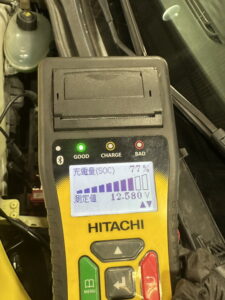 専用テスターで診断したところ充電量の数値が下がっていたため