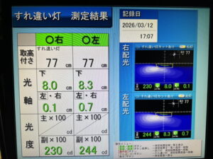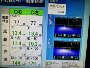 車検の保安基準項目でもあり、適正な調整により安全な夜間走行を確保いたします。