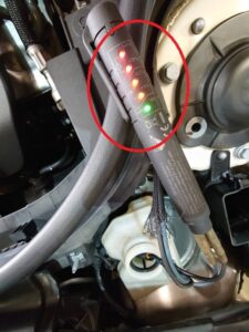 ※写真はオイル内に水分が含まれているかをチェックするテスターでの計測です。