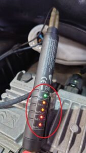 ※写真はオイル内に水分が含まれているかをチェックするテスターでの