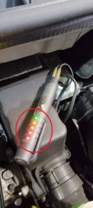 ※写真はオイル内に水分が含まれているかをチェックするテスターでの