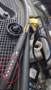 ※写真はオイル内に水分が含まれているかをチェックするテスターでの