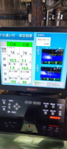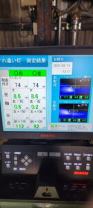 ヘッドライトの光軸をテスターで測定し、調整を行いました。