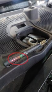 ※写真はオイル内に水分が含まれているかをチェックするテスターでの