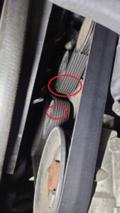 補機類を動かすファンベルトにヒビが見られたため、交換しました。