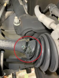 足回りの点検を行ったところ、ドライブシャフトブーツに亀裂や損傷が見られたため、交換いたしました。