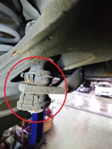 経年劣化によりブッシュにひび割れが発生していたため、左右とも交換しました。
